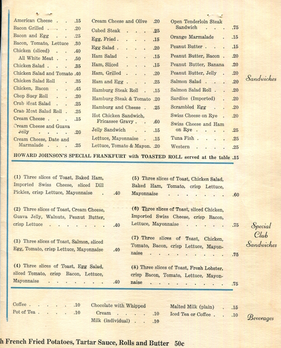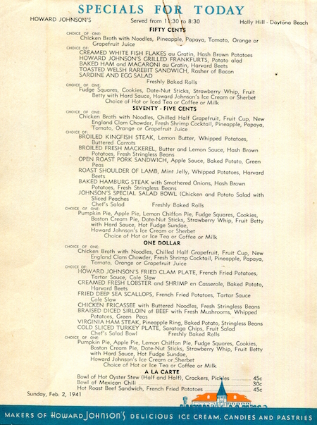 USA Florida Daytona Beach Restaurant Howard Johnson s Menu 1941 Inside 4