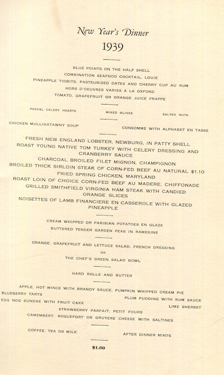 USA Colorado Denver Menu Hotel Oxford New Years 1939 Inside