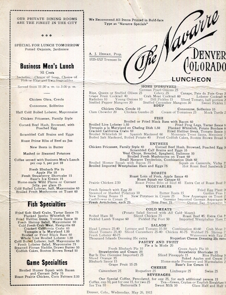 USA Colorado Denver Menu Hotel The Navarre 1915 1