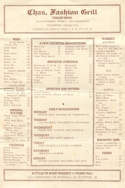USA Colorado Denver Menu Hotel The Navarre 1915 2 Inside 2