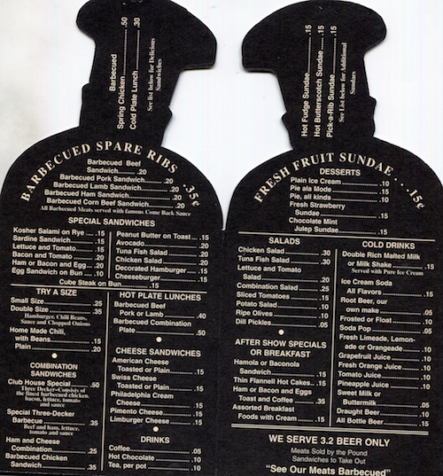 USA Colorado Denver Menu Pick A Rib 1928 Inside