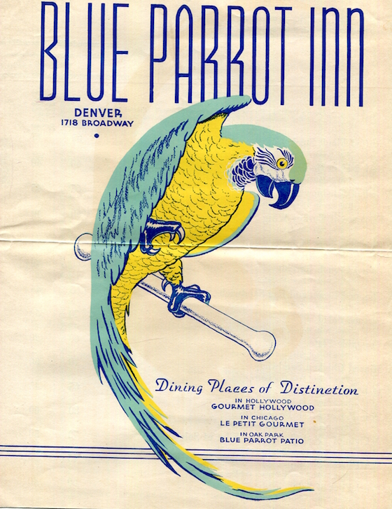 USA Colorado Denver Menu Restaurant Blue Parrot Inn 1944 Front