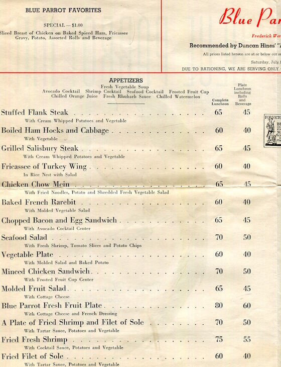 USA Colorado Denver Menu Restaurant Blue Parrot Inn 1944 Inside 1