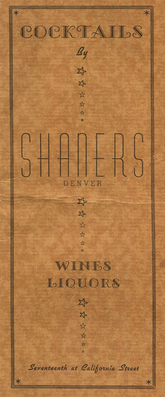 USA Colorado Denver Menu Restaurant Shaners 1938 Front