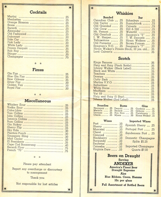 USA Colorado Denver Menu Restaurant Blue Parrot Inn 1944 Inside 2