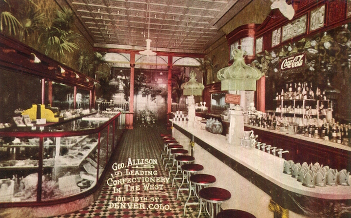 USA Colorado Denver Postcard Restaurant George Allison Soda Fountain 1916