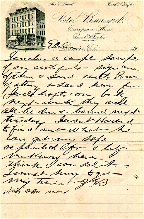 USA Colorado Denver Stationery Hotel Brunswick 1923