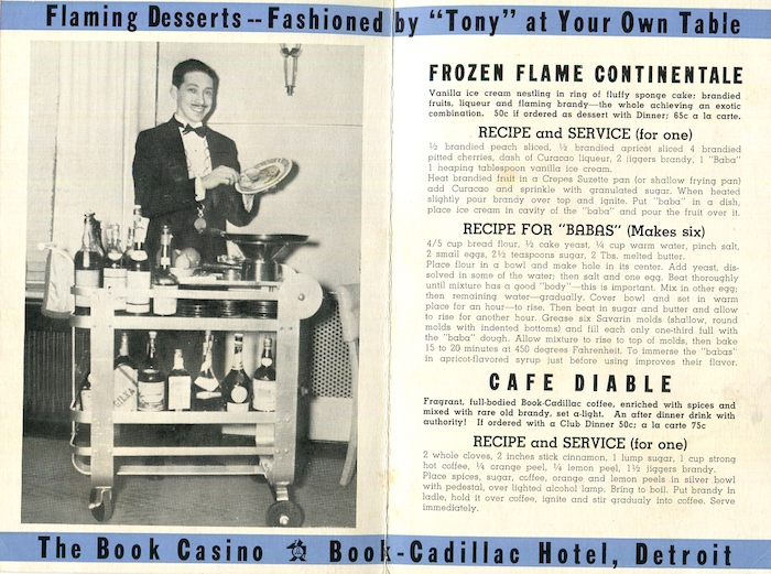USA Michigan Detroit Brochure Hotel Cadillac Desserts 1930 Inside