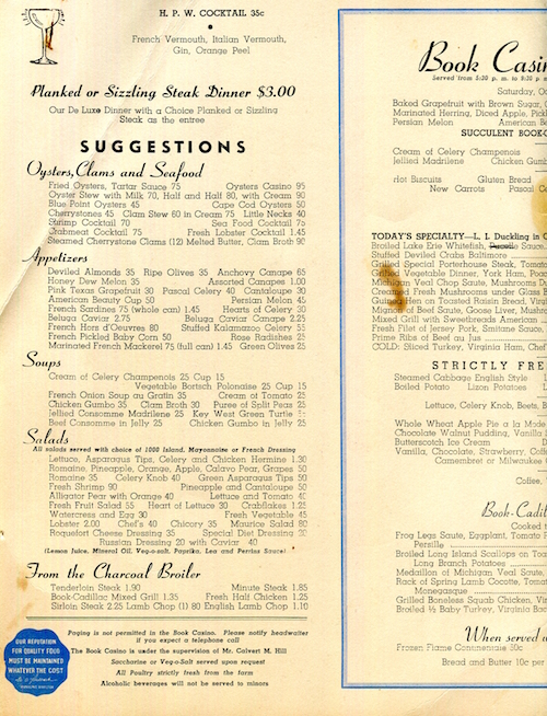 USA Michigan Detroit Menu Hotel Book Cadillac The Book Casino 1941 Inside 2