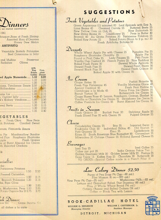 USA Michigan Detroit Menu Hotel Cadillac 1888 Inside 1