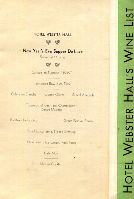 USA Michigan Detroit Menu Hotel Webster Halls New Years Eve 1935 Inside 2