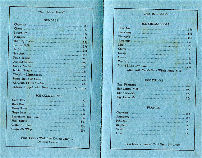 USA Michigan Detroit Menu Price Drug Co Soda Fountain 1920 Inside
