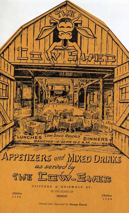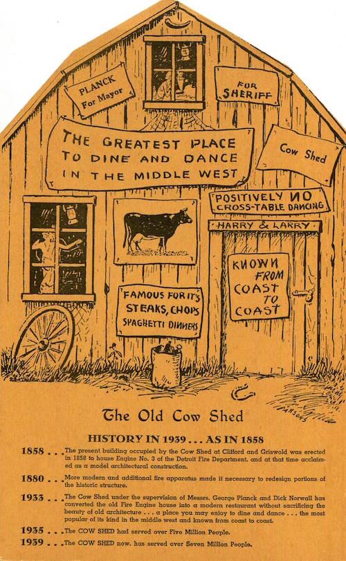 USA Michigan Detroit Menu Restaurant Cow Shed 1939 Front