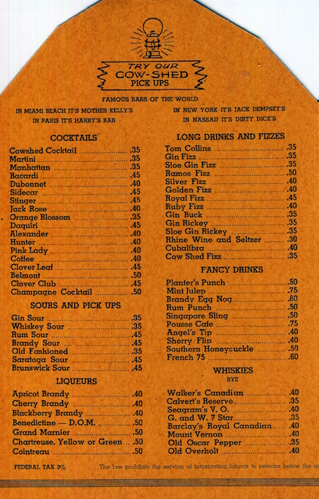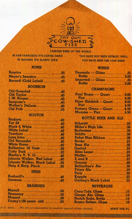 USA Michigan Detroit Menu Restaurant Cow Shed 1939 Inside 2