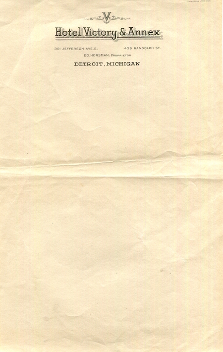 USA Michigan Detroit Stationery Hotel Victory Annex 1931