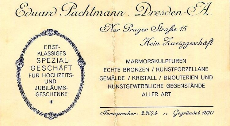 Germany Dresden Commerce Business Card Eduard Pachtman 1935