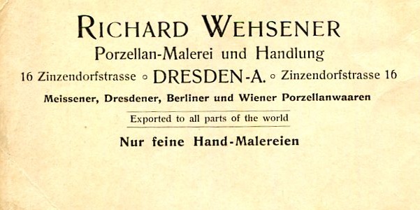 Germany Dresden Commerce Business Card Richard Wehsener 1910