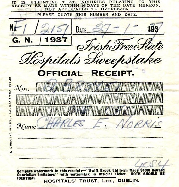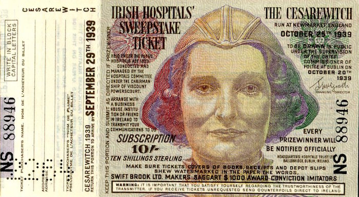 Ireland Dublin Commerce Irish Sweepstakes Ticket 1939