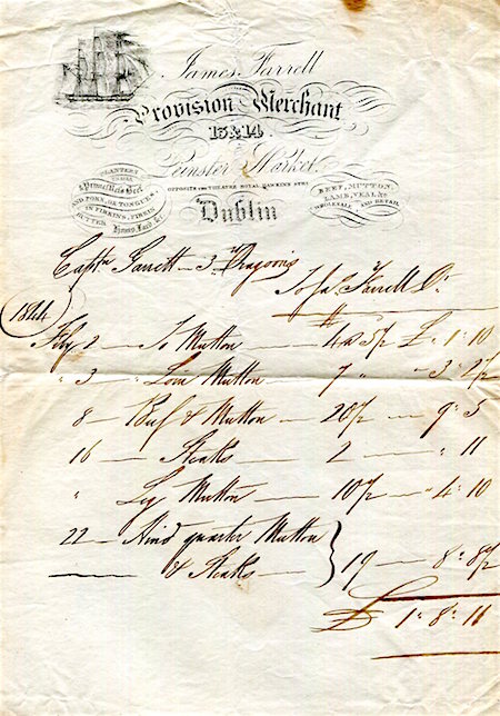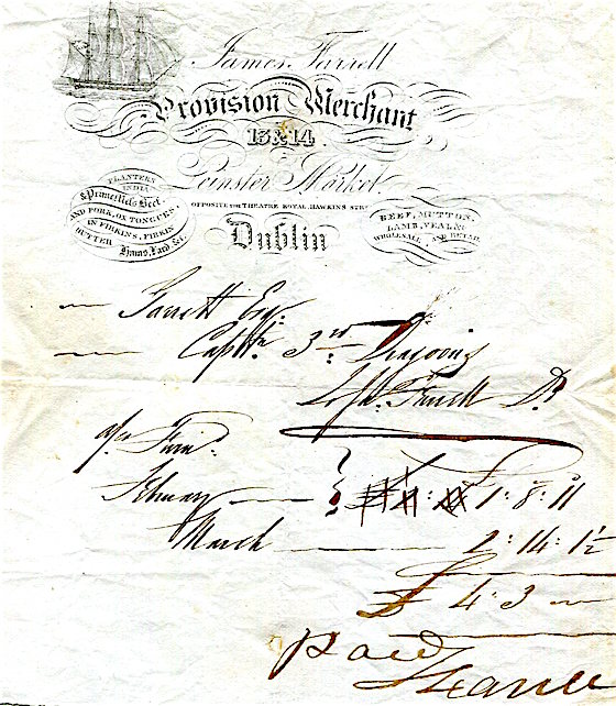 Ireland Dublin Commerce James Farrrel Receipt Provisions 1844