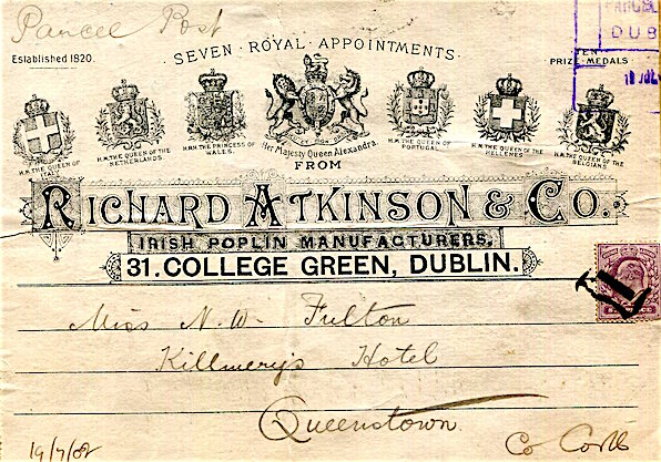 Ireland Dublin Commerce Richard Atkinson Co Shipping Label Irish Poplin 1902