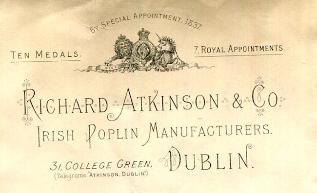Ireland Dublin Commerce Ricjard Atkinson Co Business Card Irish Poplin 1902