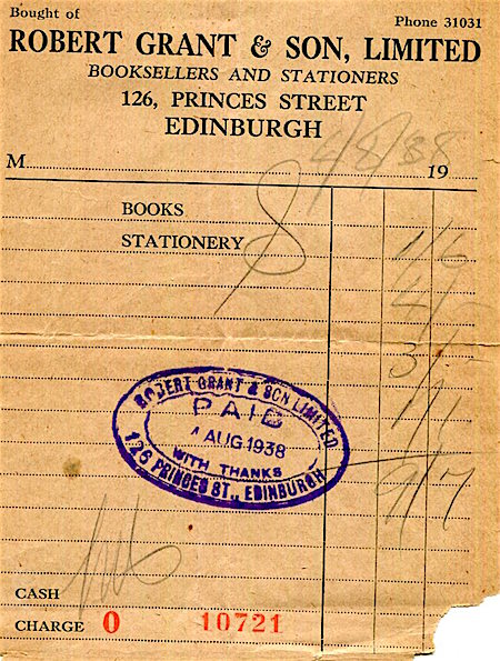 Scotland Edinburgh Commerce Robert Grant Son Receipt 1938