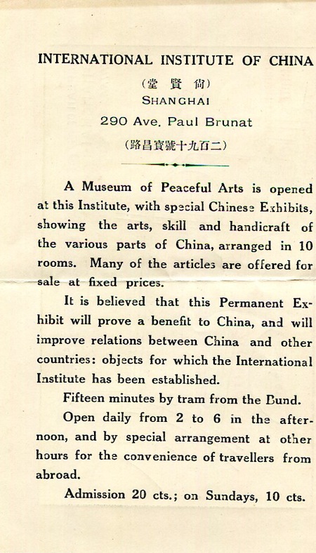 Shanghai Entertainment Leaflet Museum Of Peaceful Arts 1911 Back