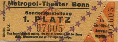 Germany Entertainment Province Rhineland Bonn Metropol Theater Ticket 1933