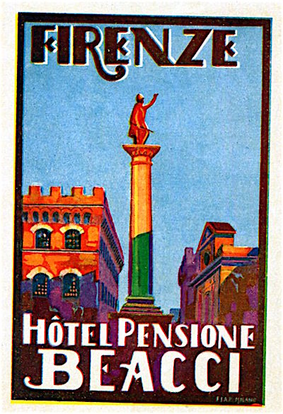 Italy Florence Hotel Beacci Luggage Label 1930