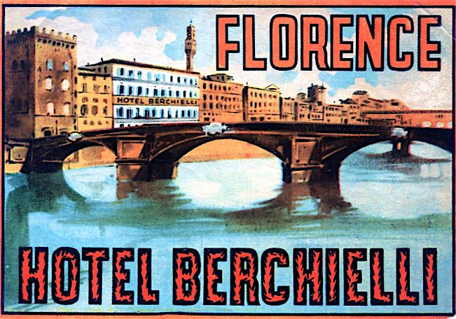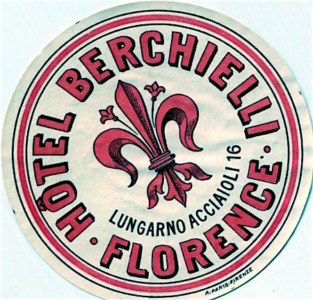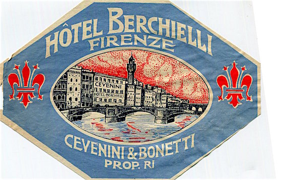 Italy Florence Hotel Berchielli Luggage Label 1934