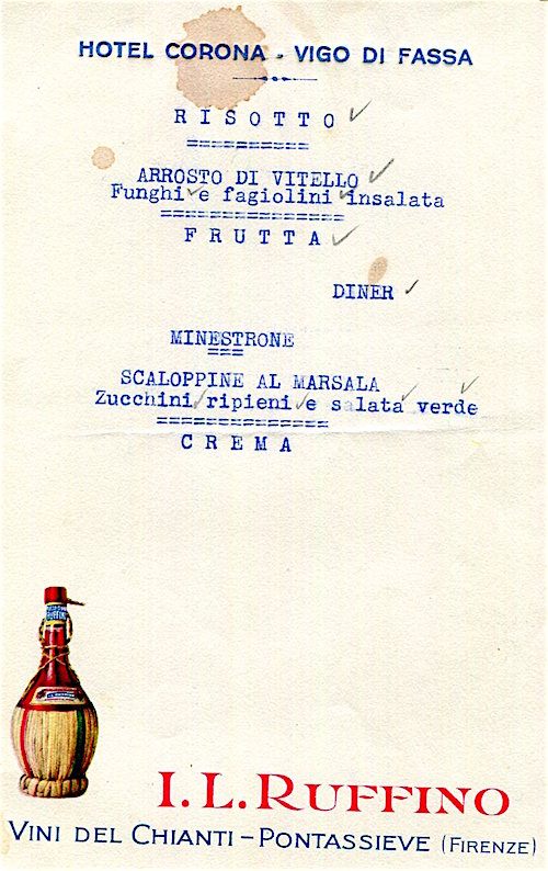 Italy Florence Hotel Corona Menu 1927