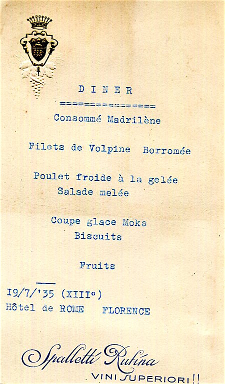 Italy Florence Hotel De Rome Menu 1935