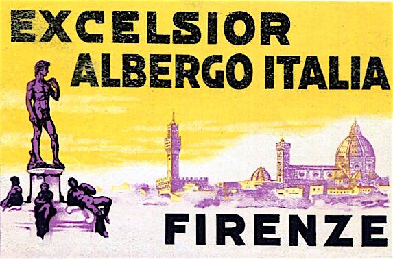 Italy Florence Hotel Excelsior Albergo Italia Luggage Label 1930
