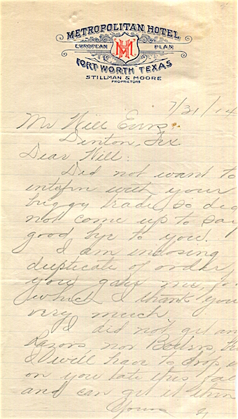 USA Texas Fort Worth Stationery Hotel Metropolitan 1914