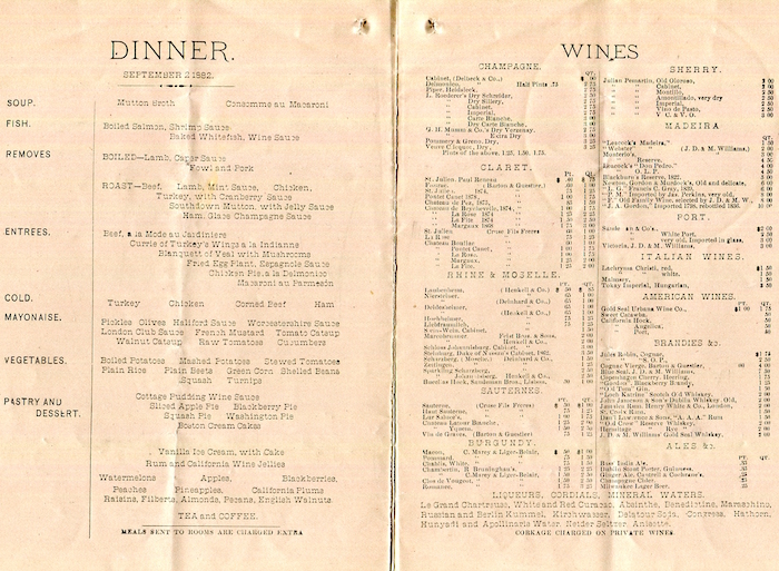 USA New Hampshire Franconia Menu Hotel Notch Profile House 1882 3 Inside