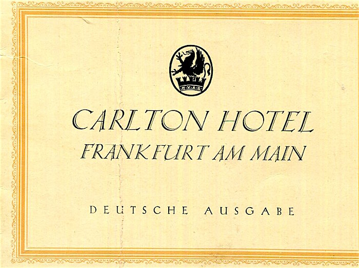 Germany Frankfurt Hotel Carlton Brochure 1928 Front