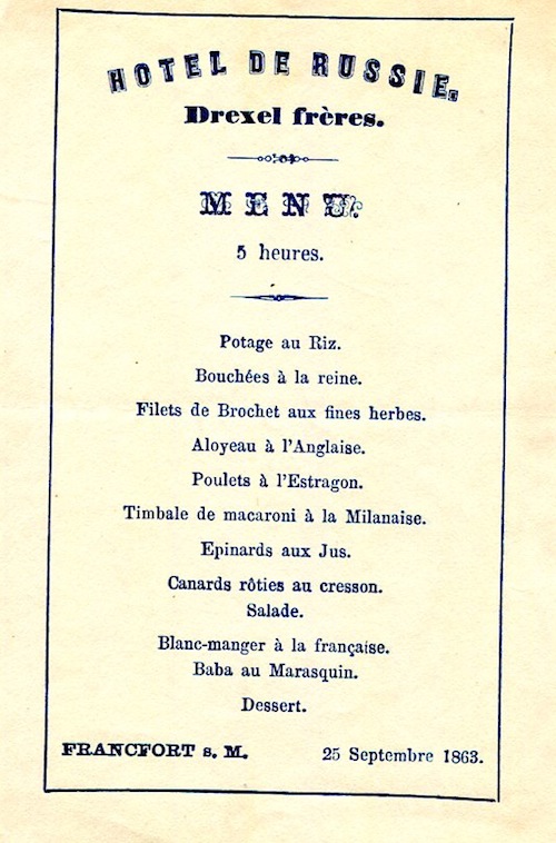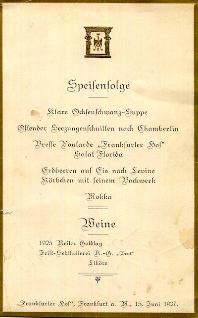 Germany Frankfurt Hotel Frankfurter Hof Menu 1927