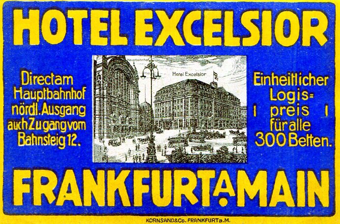 Germany Frankfurt Hotel Excelsior Luggage Label 1928