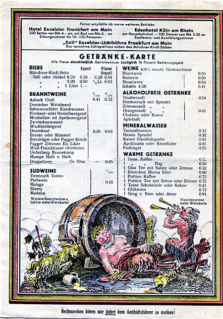 Germany Frankfurt Hotel Excelsior Menu Münchner Kindl Gtuben 1938 Back