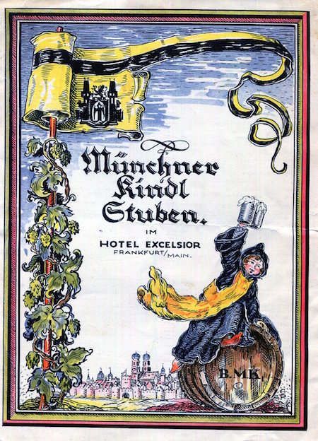 Germany Frankfurt Hotel Excelsior Menu Münchner Kindl Gtuben 1938 Front