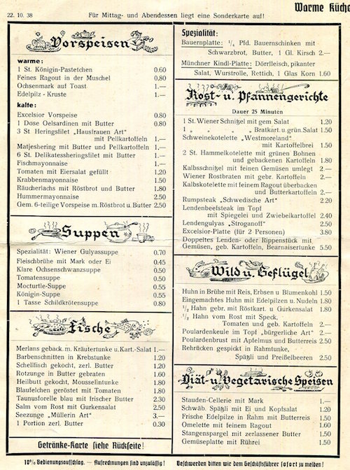 Germany Frankfurt Hotel Excelsior Menu Münchner Kindl Gtuben 1938 Inside 1