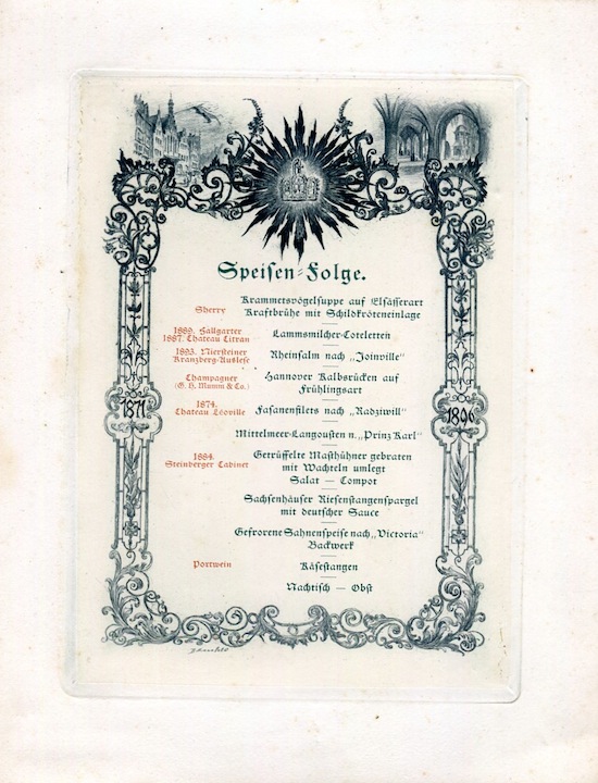 Germany Frankfurt Special Occasion Frankfurt Peace Anniversary Banquet Menu 1896 Front