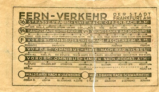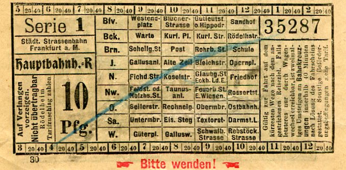 Germany Frankfurt Tram Ticket 1912-1 Front