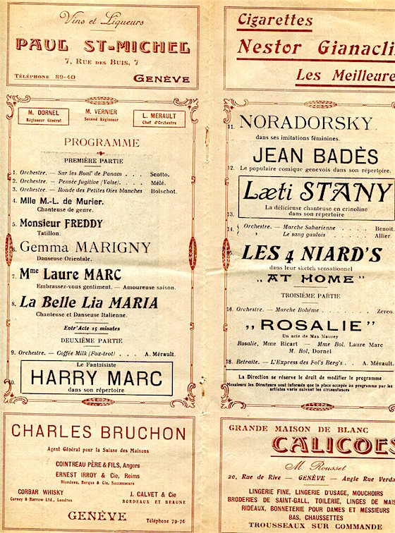 Switzerland Geneva Entertainment Kursaal Program Jazz 1930 Inside 1