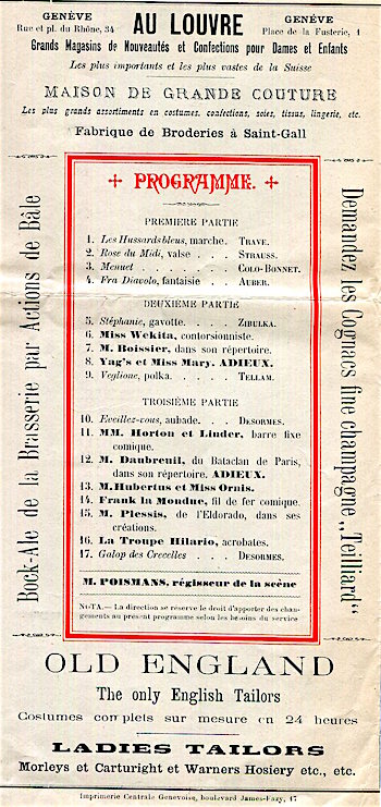 Switzerland Geneva Entertainment Kursaal Program 1894 Inside 1