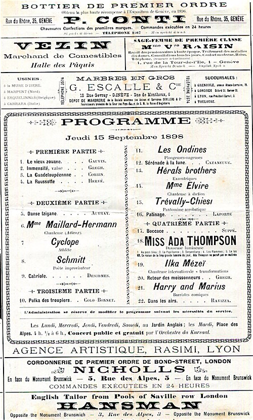 Switzerland Geneva Entertainment Kursaal Program 1898-1 Front
