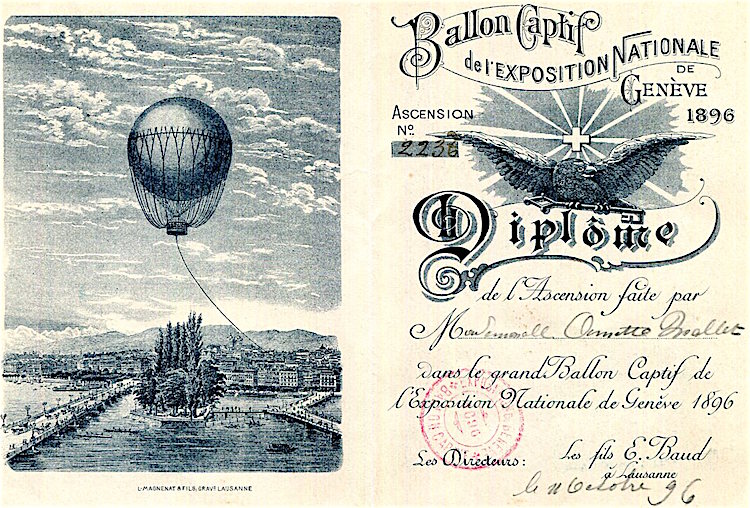 Switzerland Geneva National Exposition Of Geneva Certificate Ballon Ascent 1896