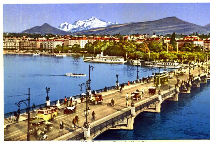 Switzerland Geneva Postcard Pont Du Mont Blanc 1937