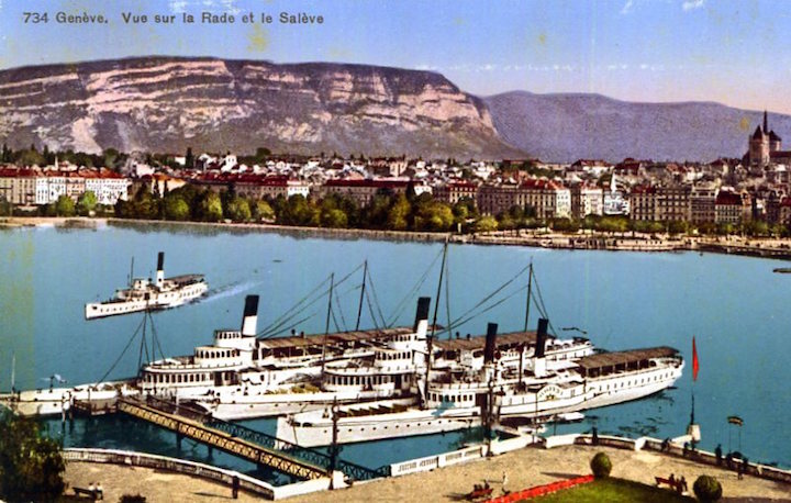 Switzerland Geneva Postcard Steamships 1920-1