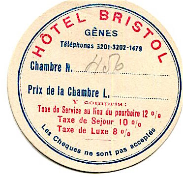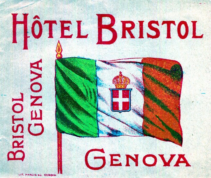 Italy Genoa Hotel Bristol Luggage Label 1926